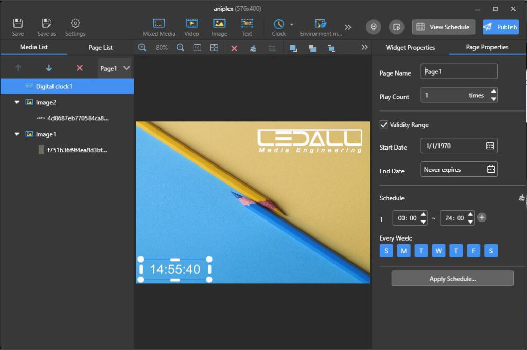 erstellen Sie in Handumdrehen Präsentationen aus verschiedensten Medienihalten und ordnen Sie diese in Playlists für die zeitgestuerte Wiedrgabe an.